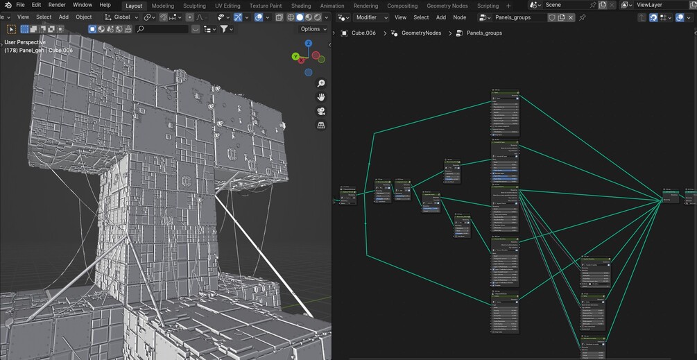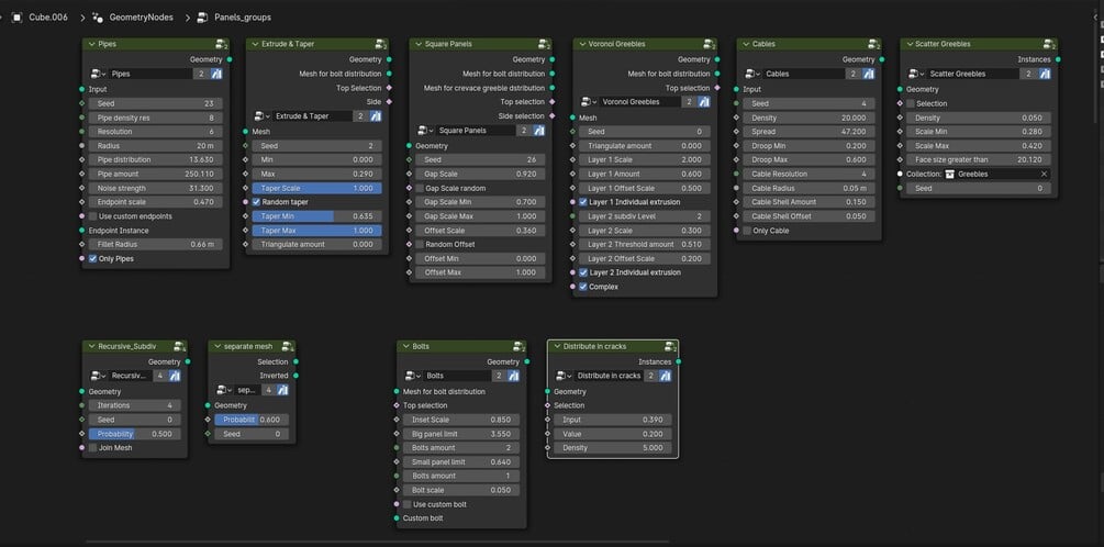 I made this collection of Geometry node groups that allow you to procedurally create scifi-ish details!