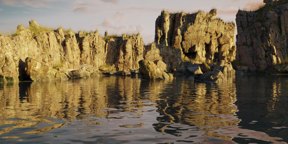 This pack includes a water shader that has dispersion, animated caustics, and animated waves, and has foam at the contact of other objects.